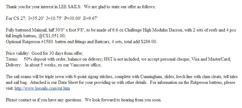 Island Planet did give me two quotes, one was for a sail delivered 6 months out. That one was the cheapest option of all quotes by far.